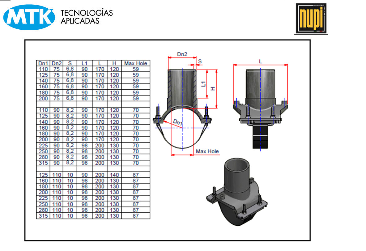 Collarin de toma 160x75mm - PN16 - PE100 - EF