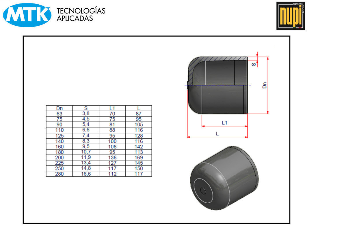TAPON DE MANGA LARGA PE100 SDR17 PFA/PN10