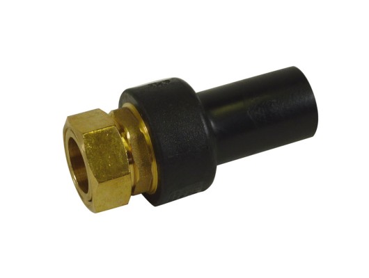 CONEXIÓN DE TRANSICIÓN DE PE / LATÓN CON ADAPTADOR DE TUERCA LIBRE PE100 SDR11 PFA / PN16
